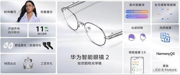 得益于鸿蒙OS(HarmonyOS)系统的加持,这款眼镜不仅能独立使用,更是华为智慧生态的重要入口。它支持跨端无缝协同,可与手机、平板、PC等多设备保持连接,让音频与数据在设备间顺畅流转。对比2023年推出的“华为智能眼镜2”,新品在延续智慧播报(如天气、日程、打车信息提醒)等能力的同时,通过摄像头进一步拓展了使用边界,带来更多基于视觉感知的全新玩法。